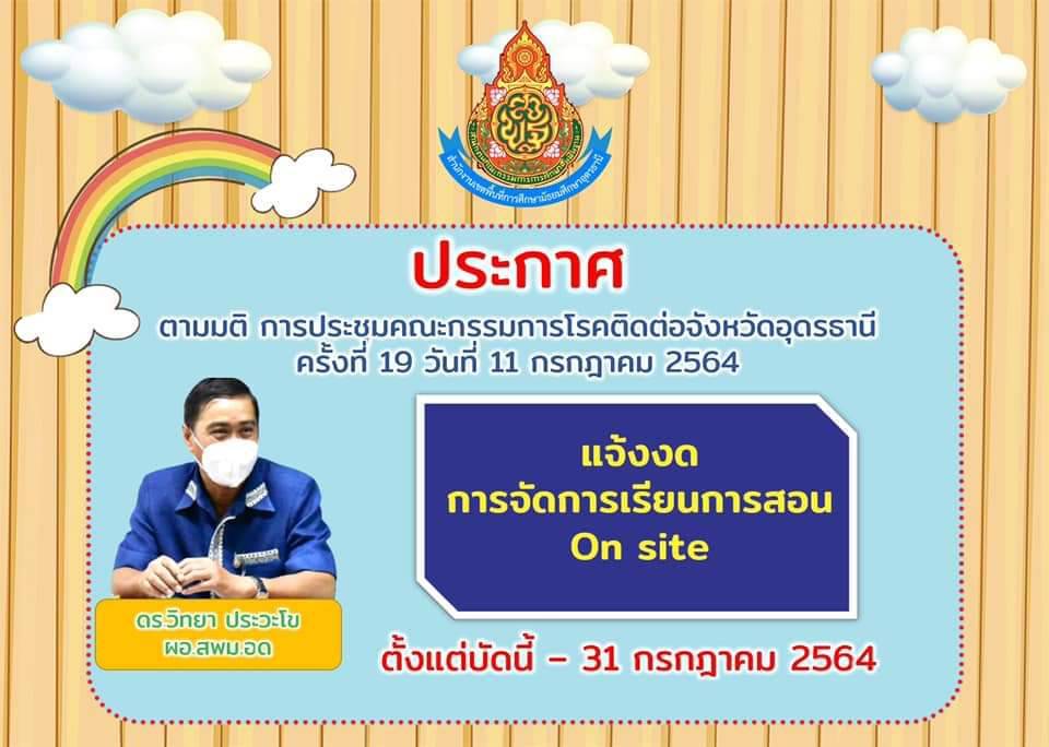 แจ้งงดการจัดการเรียนการสอนแบบ on site ออกไปจนถึง 31 กรกฎาคม 2564