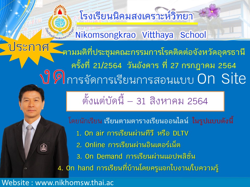 แจ้งงดการจัดการเรียนการสอนแบบ on site ออกไปจนถึง 31 สิงหาคม 2564