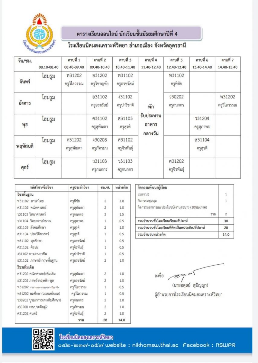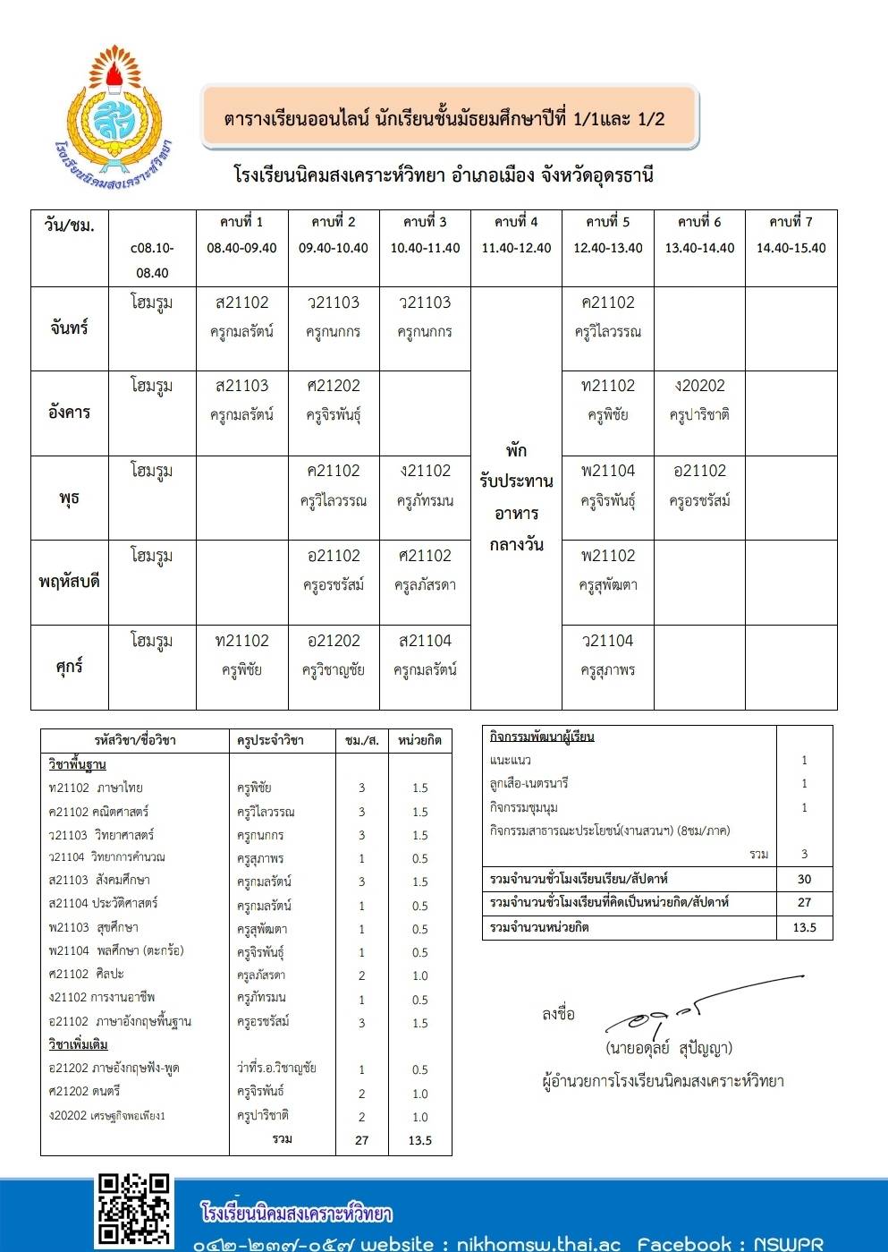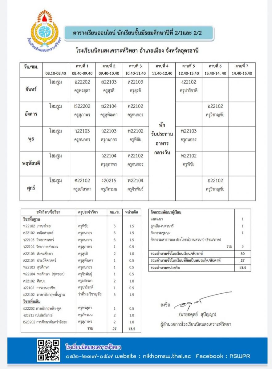 ตารางเรียนออนไลน์ ภาคเรียนที่ 2 ปีการศึกษา 2564 (ใชสำหรับการเรียนการสอนระหว่างวันที่ 4 - 14 มกราคม 2565)