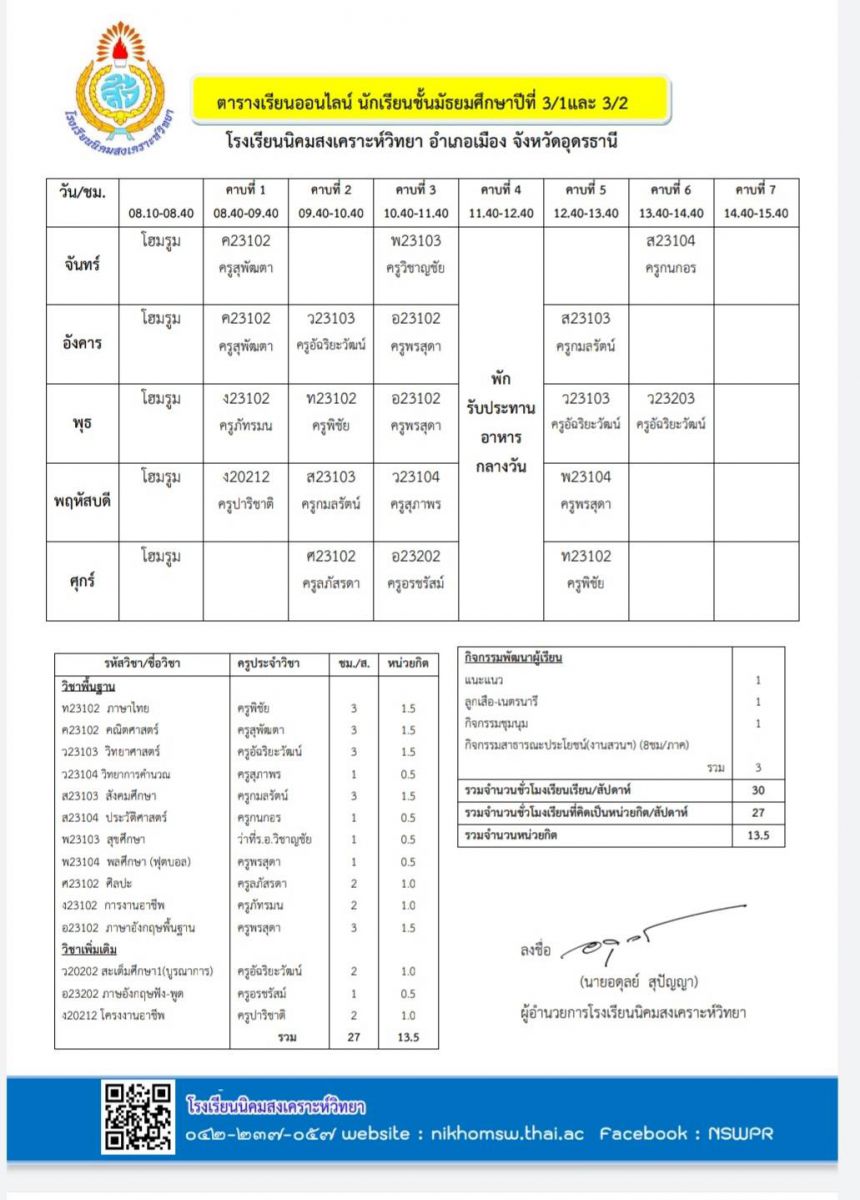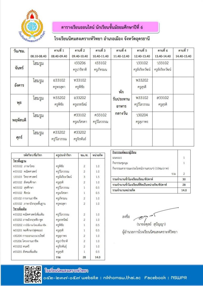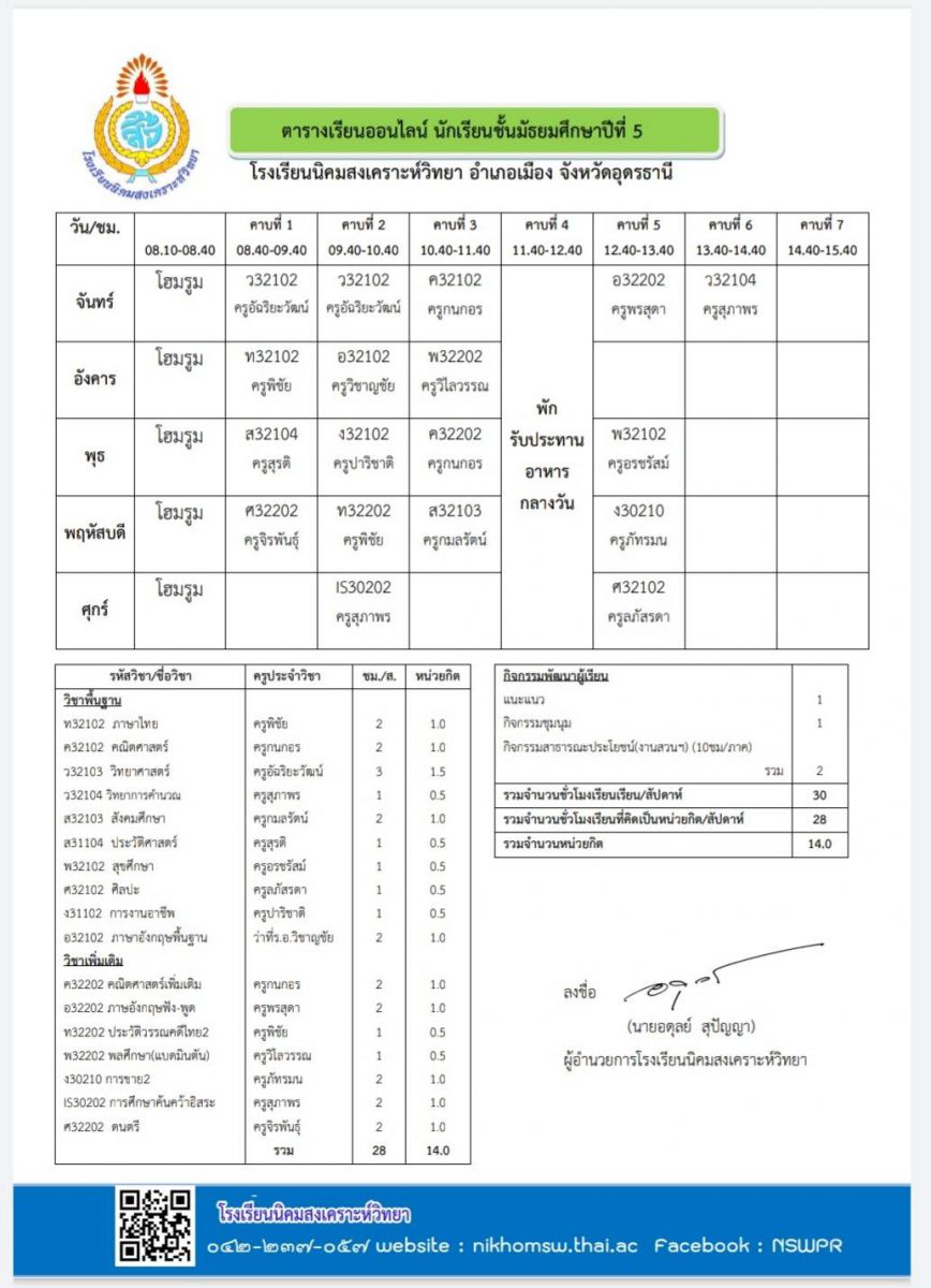 ตารางเรียนออนไลน์ ภาคเรียนที่ 2 ปีการศึกษา 2564 (ใชสำหรับการเรียนการสอนระหว่างวันที่ 4 - 14 มกราคม 2565)