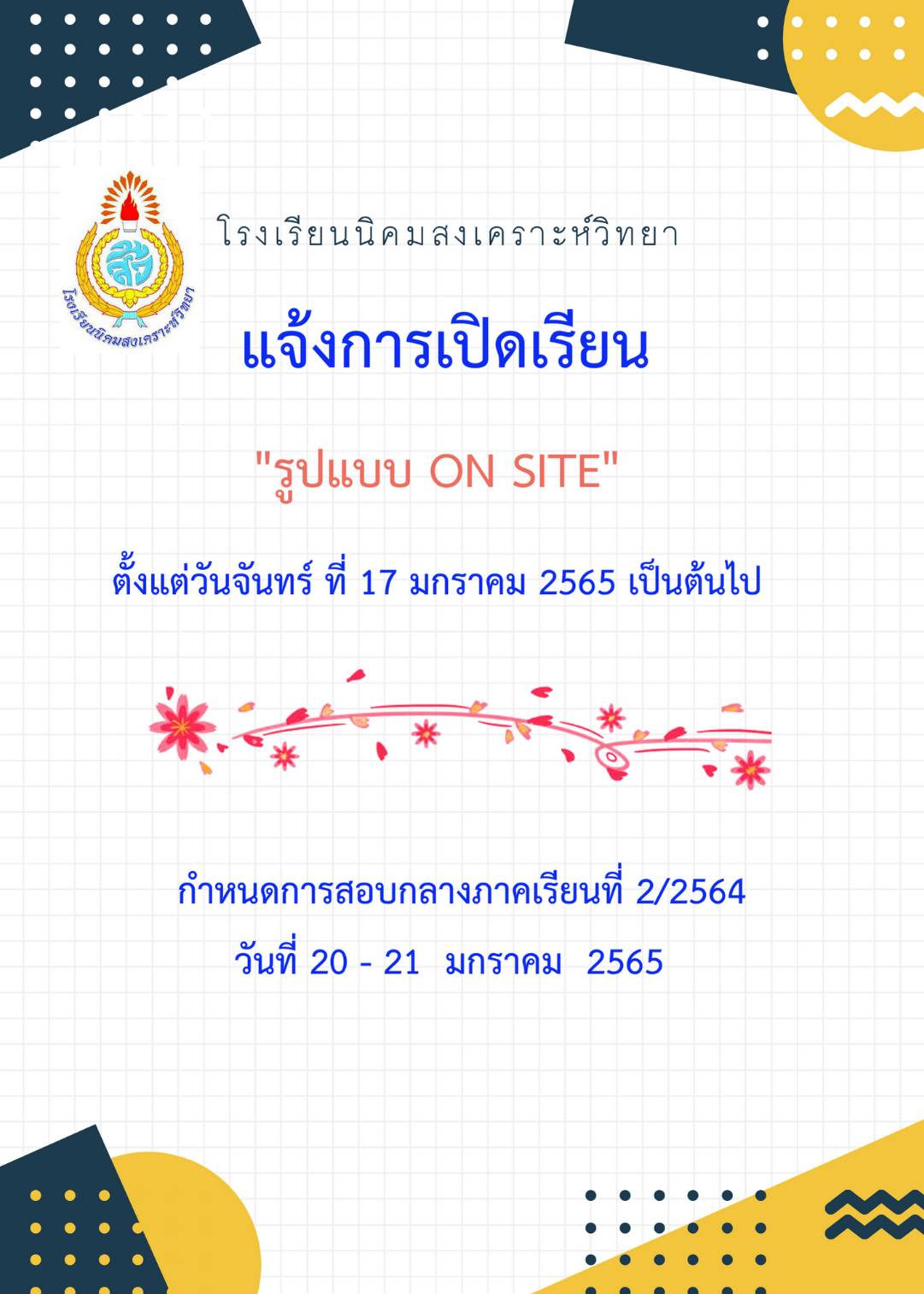 แจ้งการเปิดเรียน รูปแบบ On site