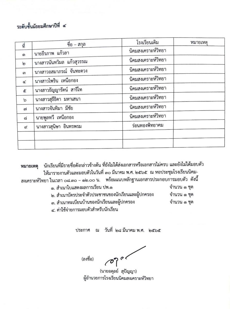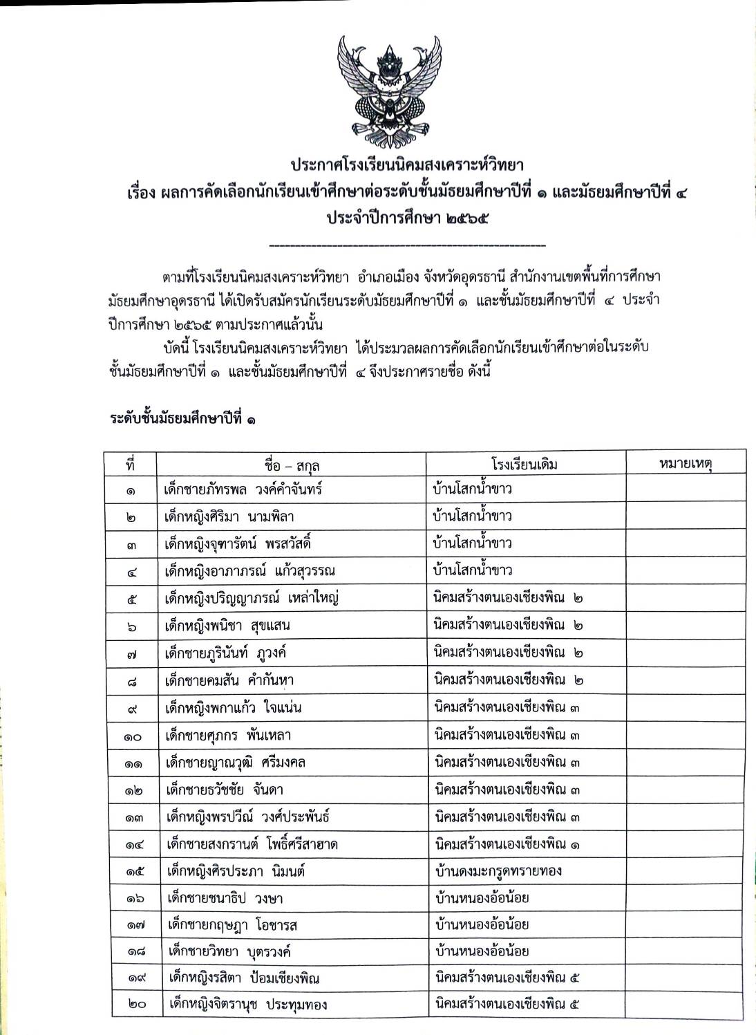 ผลการคัดเลือกนักเรียนเข้าศึกษาต่อระดับชั้นมัธยมศึกษาปีที่ 1 และ มัธยมศึกษาปีที่ 4 ปีการศึกษา 2565