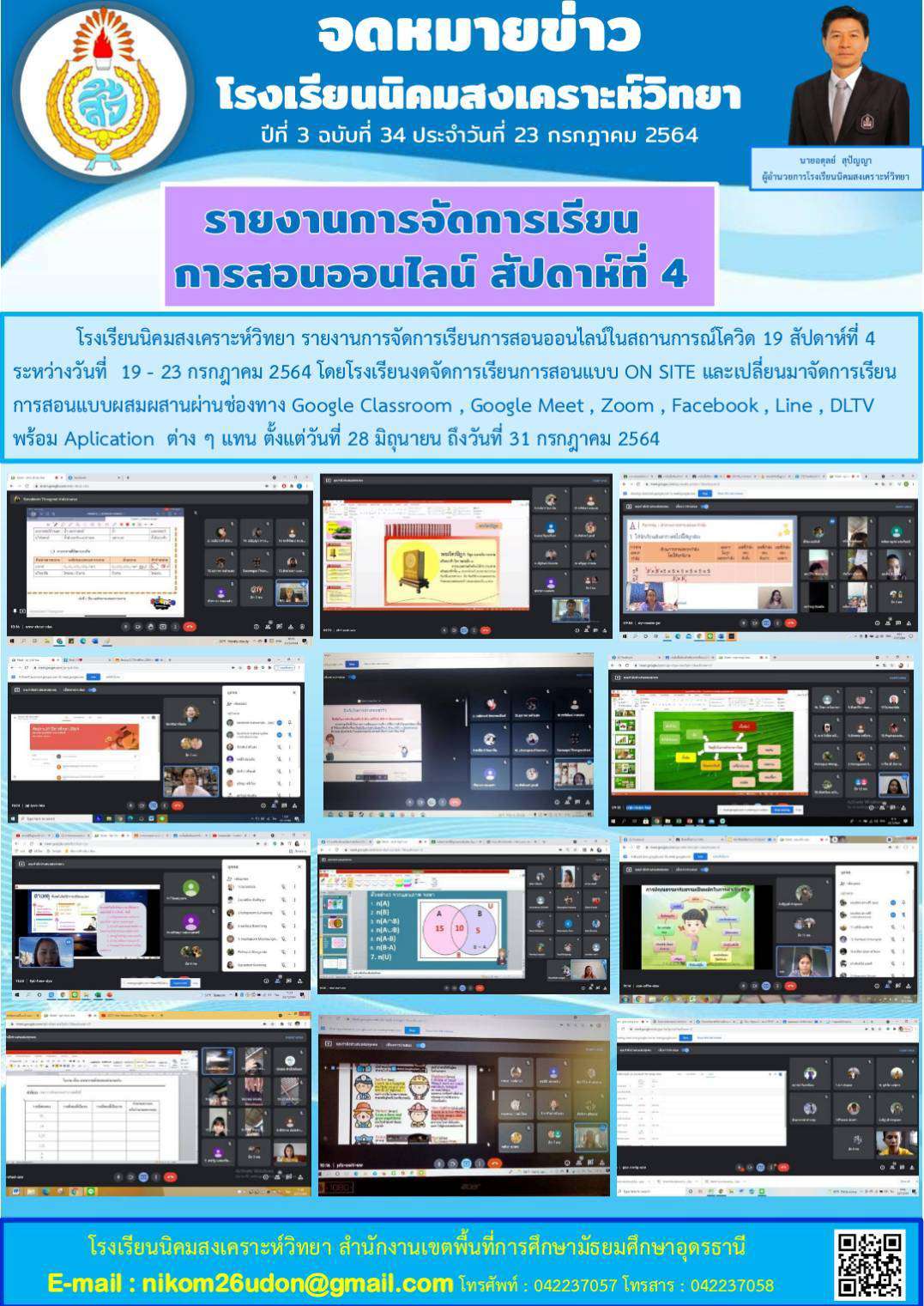การจัดการเรียนการสอนออนไลน์ประจำสัปดาห์ที่ 4 ของโรงเรียนนิคมสงเคราะห์วิทยา