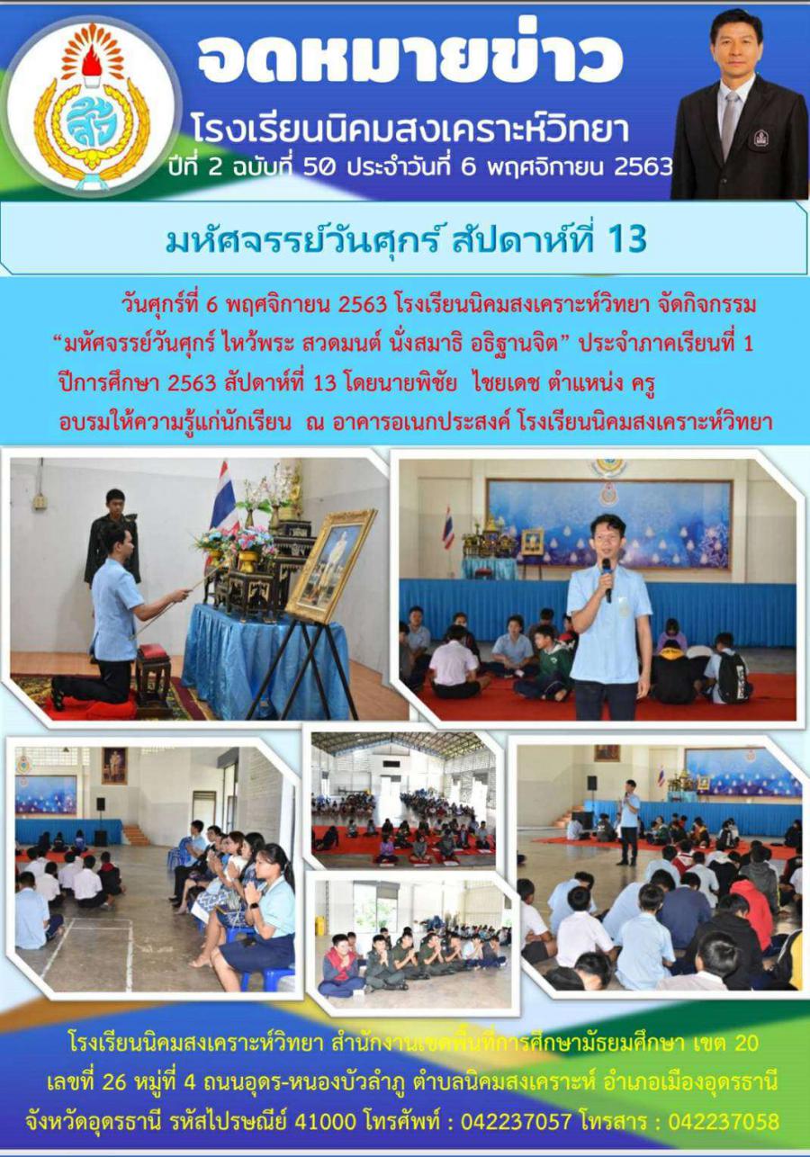 ประจำภาคเรียนที่ 1 ปีการศึกษา 2563 สัปดาห์ที่ 13